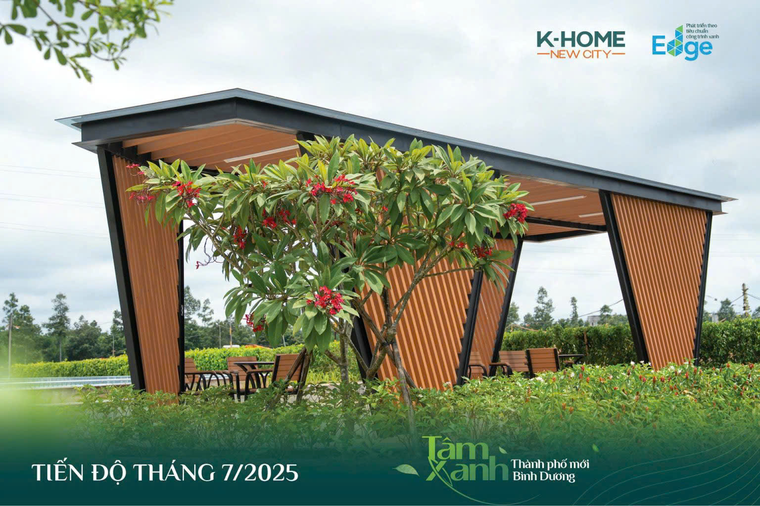 Tại trung tâm, công viên Vườn Nhiệt Đới đã được hình thành với đầy đủ hồ bơi, chòi nghỉ, lối đi bộ và thảm thực vật được chăm chút tỉ mỉ. Đây hứa hẹn sẽ là điểm dừng chân thư giãn, check-in lý tưởng dưới hoàng hôn cho mọi cư dân. Chòi nghỉ xinh xắn, bầu không khí trong lành, khoảng lặng bình yên – tất cả góp phần tạo nên không gian sống “chuẩn Singapore” mà hiếm có dự án nhà ở xã hội nào sở hữu.